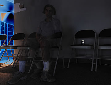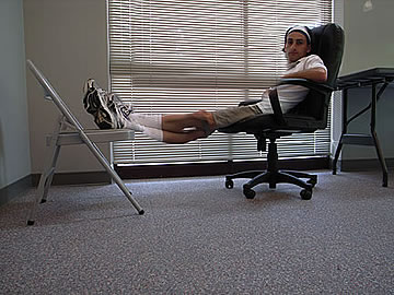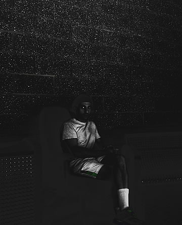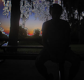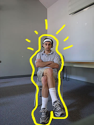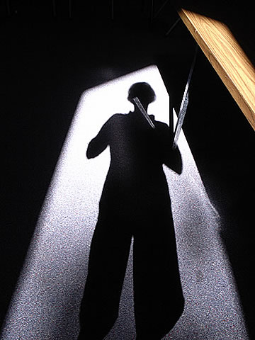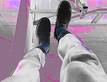 What am I beginning to brew in my mind here? My most special project! It is a situational performance art that I will cover in my semi-autobiographical novel in regards to the dysfunctional contemporary interactions and connections between women and men (which later will also split into a nonfiction version called, The Missing Love). With this image, I am so to speak beginning to be blowing my own trumpet... except, instead of a trumpet, I am using a shining light directed at me. A big-big egomaniac is in the works. I mean, who the hell sits on a chair that is placed on the top of a table? The one that needs to be closer to the shining light. What is he thinking? That women, one day, will be reading about themselves!