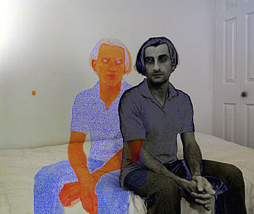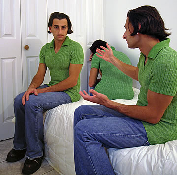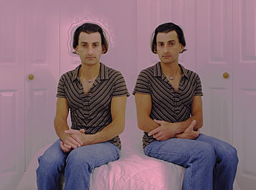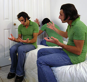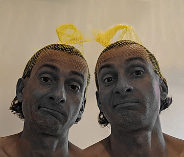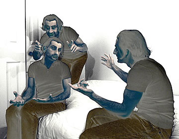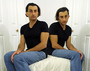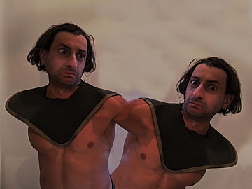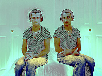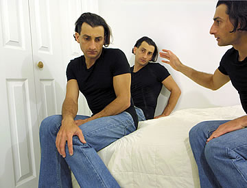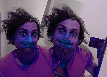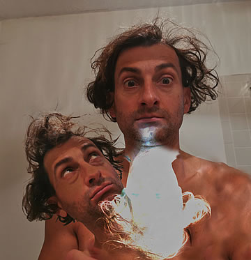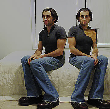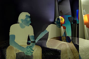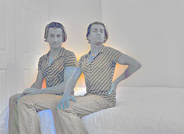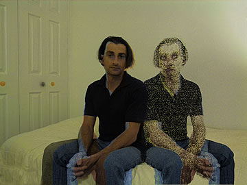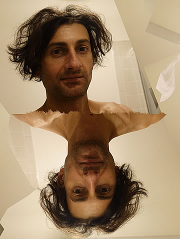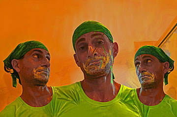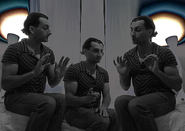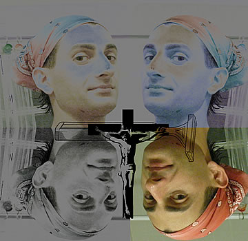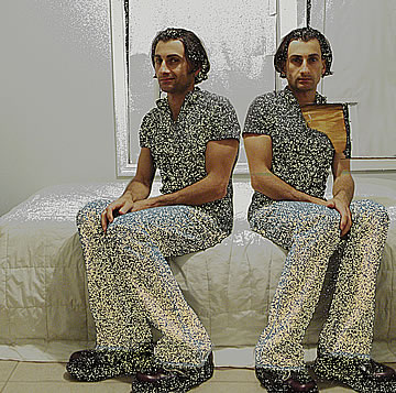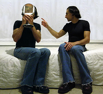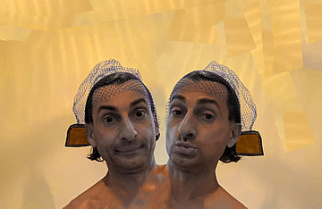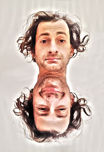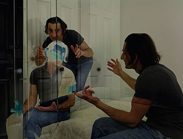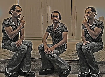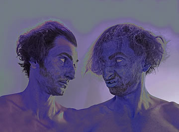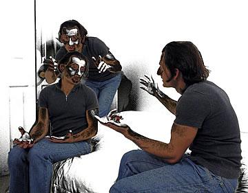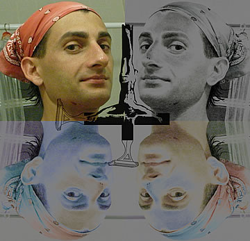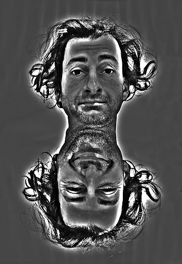 This one is one of my all time favorite self-portraits. In Michelangelo's Last Judgment, God empowers Adam. But here in my apartment, and in Duchamp's apartment, I get to empower the pawns; they are the same pawns that Duchamp used to play with. The “father of conceptual art” – used his savvy brain power to treat art as a playground. While the average art lovers didn't understand his work, it amused quite a bit of art critics... enough to shape him as one of the biggest names in art history.... Well, it was time for me to step in and empower the same pawns that he manipulated. But this time I needed to empower them with brain power. While he is smiling sarcastically, I am on a very serious mission.... I want to clarify that the animation is not part of the self-portraits, but in this case I am not only trying to cut down on space, but also since I created several different images (with the brain one being the most important one) I stacked them on the top of each other, and the conveying of the message seems to work well.
