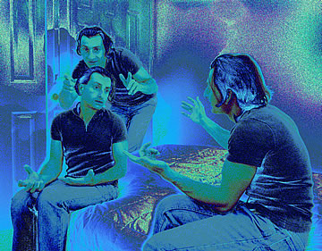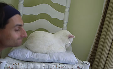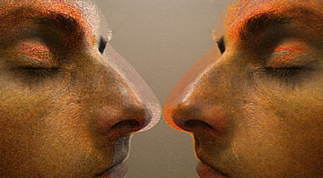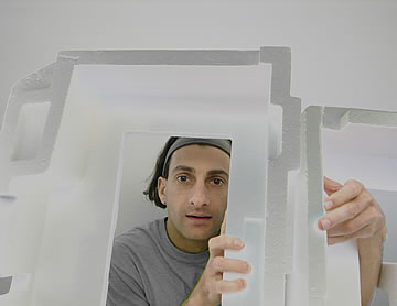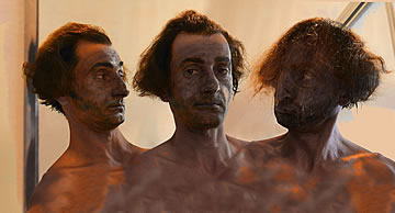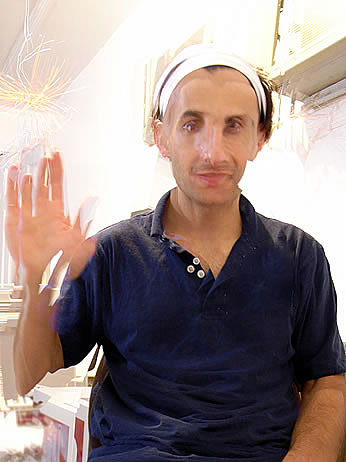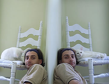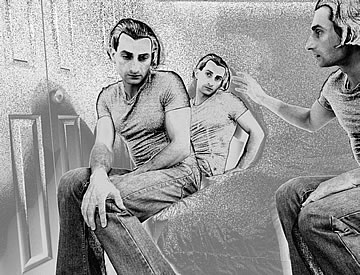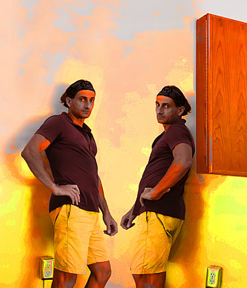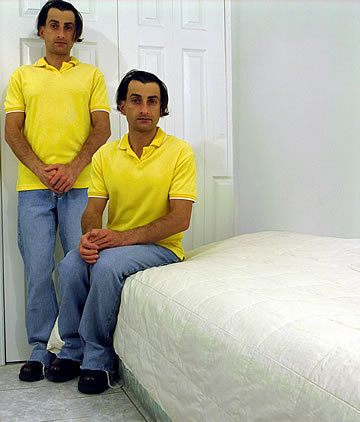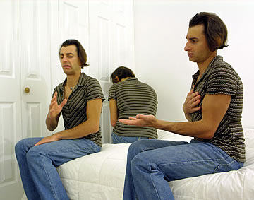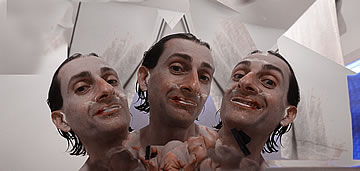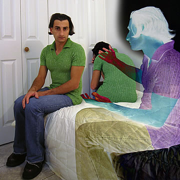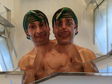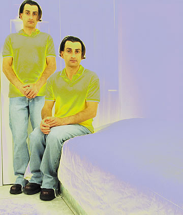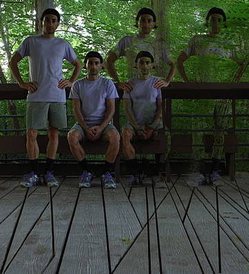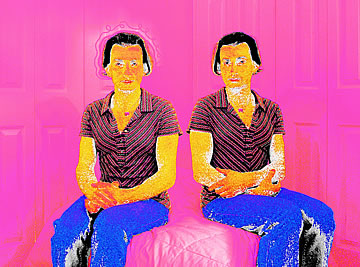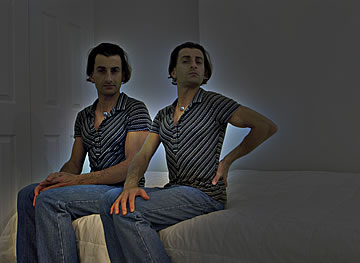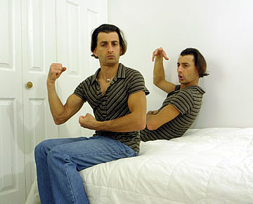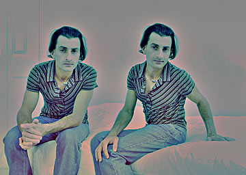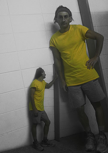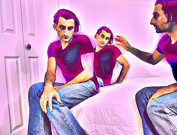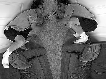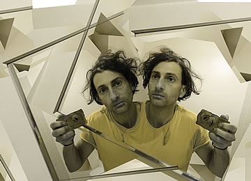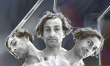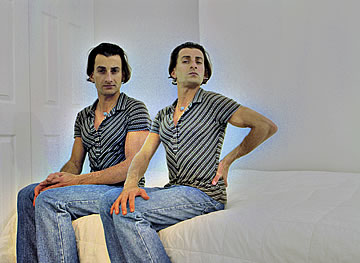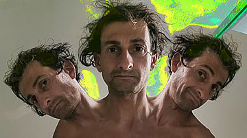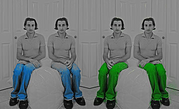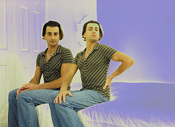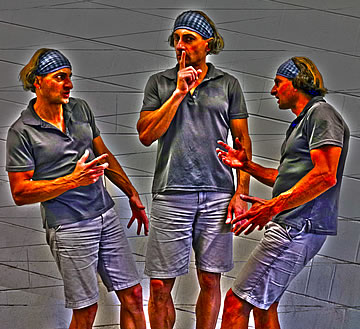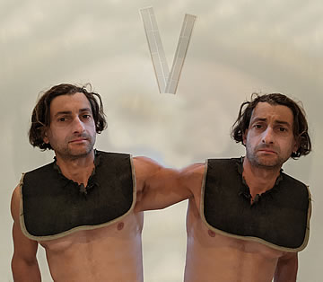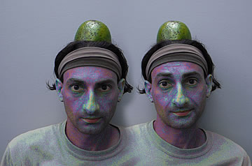 This one is one of my all time favorite self-portraits. In Michelangelo's Last Judgment, God empowers Adam. But here in my apartment, and in Duchamp's apartment, I get to empower the pawns; they are the same pawns that Duchamp used to play with. The “father of conceptual art” – used his savvy brain power to treat art as a playground. While the average art lovers didn't understand his work, it amused quite a bit of art critics... enough to shape him as one of the biggest names in art history.... Well, it was time for me to step in and empower the same pawns that he manipulated. But this time I needed to empower them with brain power. While he is smiling sarcastically, I am on a very serious mission.... I want to clarify that the animation is not part of the self-portraits, but in this case I am not only trying to cut down on space, but also since I created several different images (with the brain one being the most important one) I stacked them on the top of each other, and the conveying of the message seems to work well.