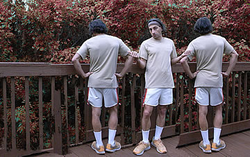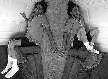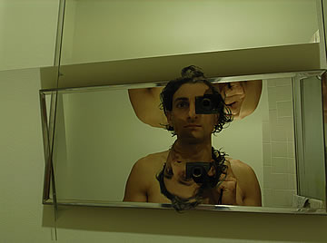 These self-portraits were taken from the top of a latter, with the camera pointed down at a mirror below the latter. (Again, the animation is not part of the self-portraits, but with the animation I am able to put 4 images on the space of one.) What is scattered on the ground? My rough draft papers with my red pen check-marks and each visited paper marked with a giant X to indicate to me that I have finished editing it. The whole ground was covered in edited papers.. until the wind blew. This self-portrait, however, has an upcoming surprise: its name will change after the publishing of my semi-autobiographical novel and my booklet that reveal my quarter-of-a-century-long situational performance regarding the faulty interactions and connections between women and men. Feminism... But Without Females? is the sampler book that contains the introductory chapters to my situational performance; the book however was not intended to reveal the performance, and it is more like a volume 1 that will lead to the disclosure of the performance. However, by reading it, a keen eye may figure out what the performance is about.