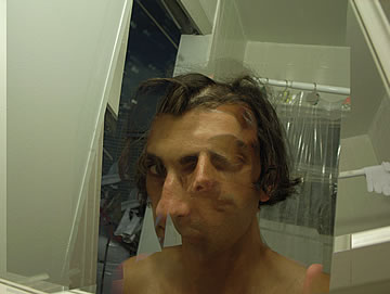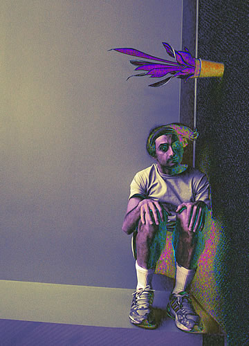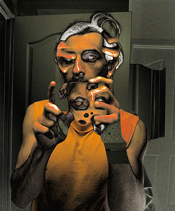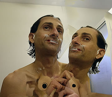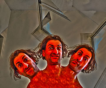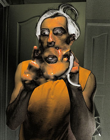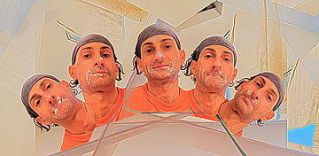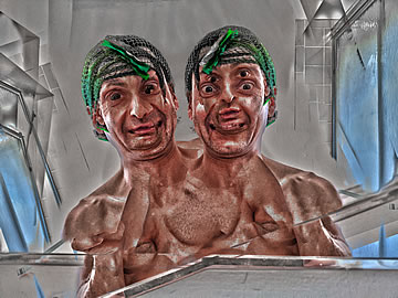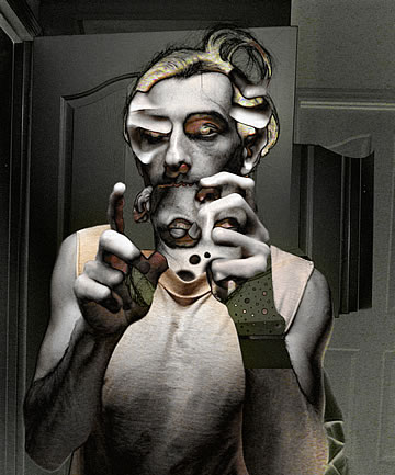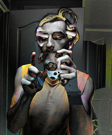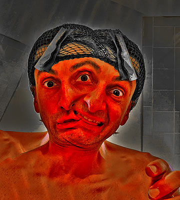 As happy as I am that I am promoting the evolving out of a dysfunctional culture which does not benefit the individuals and societies, I'd be lying if I said that I haven't had my moments of mental torture – when I have to endure the sheeple's docility. Their, so to speak, Stockholm syndrome doesn't digest well with me and it breaks me down mentally; it tortures me when I know that freedom from a dysfunctional culture is possible, yet I see that the sheeple wouldn't take the advice. I want to clarify that I am not speaking about financial freedom, which, like the rest of the sheeple I don't have as well, but I am speaking about freedom from a dysfunctional culture which I have more so than other people.... The Agony of Being Free (taken mostly in front of my toilet's mirror) is a series of humorous, digitally enhanced self-portraits that depict how deteriorated and miserable I end up looking when I am broken down for being the only person who is free – mentally free to step outside of the in-group and outside of the culturally confined zone. Wouldn't I be happy that I am not in cultural chains like the rest of the sheeple? No! One free person doesn't do it for me; all of us need to be free just as I am. I can't be alone in my freedom while the rest of the sheeple continue to embrace their imprisoning contemporary culture... without even knowing that they are not really free.
