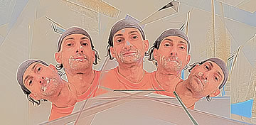 Self-portraits while the selfish culture killed quite a bit many should be self-explanatory. By reflecting upon myself, I am not doing anything socially conscious – like, for example, Joseph Beuys' planting of 7000 trees. By being ignorant of my surroundings I prolong the selfish culture. In this selfish culture I am part of the sheeple who are posing in front of the camera and reflecting upon their own crappy lives: they are admiring and themselves and expressing their hardship in life; so am I... while ignoring the deteriorating nature of our everyday individuality-obsession. (In my case, it is over 1100 self-portraits... which is a number that is probably quite less than the number of self-portraits that today's teenagers take.) Can you imagine that for the time that it took me to do all of these self-portraits, I could actually do something beneficial for the people? And what if everyone did that too? How do we “selfish” people kill others? By focusing on our own lives and behaving like independent units from each other; not behaving as a society that works together toward our common goals: the obtaining of our necessities.... This self-portrait section is a bit similar to the biggest series that I've done – “Modern” Art... and the wasted time creating it while “modern” life kills quite a bit many; there, I take pictures of various things (and I even prolong the wasting of time by digitally altering them); here, on the other hand, I am the focus of attention (and I also digitally alter the images – through which I waste even more time on my self-obsessing). The contemporary selfish selfie culture taught me to be putting on my horse blinders and to start admiring myself. Even though more or less all of the self-portraits display my self-admiration, some are more witty than others; for example, this introductory Favorites section includes self-portraits that have a bit more depth than the rest. Also, thematically many self-portraits vary quite a bit from each other. That prompted me to start sub-categorizing them. The sub-categorization thematically and by years was not in my intention, but it was necessary to enhance the user-experience and to help load the pages faster. (Please note that in the ~2000s category, I had failed to diligently date the self-portraits to their exact date; the images and photos you see there are from the mid 1990s to the early 2000s.)